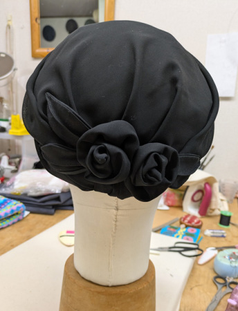 以前喪服用に作ったターバンです。 在庫が無かったんで、 サンプルとして作りました。 |