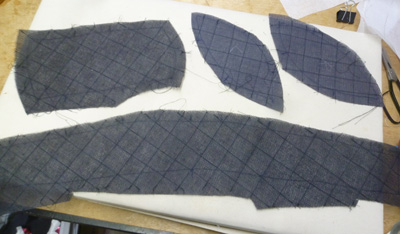 | 寒冷紗で作った、チップの抜型, シャポースタンに被せて、ドレーップを作って被せます。 |