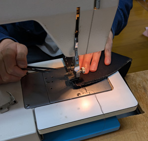 表地、トップとサイドクラウン縫い合わせの躾を掛けています。