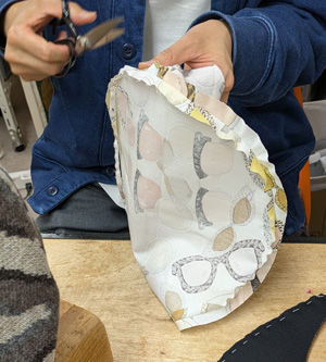 ベレー帽の裏地縫代を0.5cmにカットします。